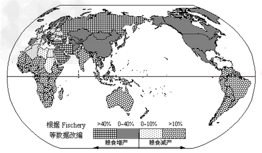 1、单选题 全球变暖是当今世界面临的重大环境问题之一。图6是℃后,世界不同区域靠雨水生长粮食产量的增减状况,读图回答第1-2题。