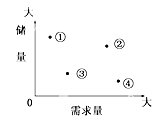 小题1:本题考查地理图表的判读能力。根据图示:资源储量较小的有③和④,需求量较大的为②和④。所以本题选择D选项。
