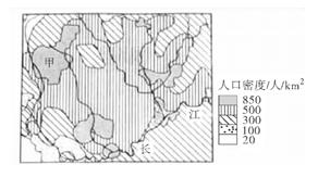 小题1:从图中可知该地位于我国长江上游的四川盆地及周边地区,从图中人口密度可知,平原地区稠密,山区人口稀少。