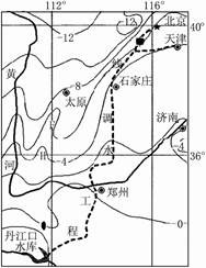 2、单选题 南水北调中线沿途区1月等温线分布图,读图,回答问题: