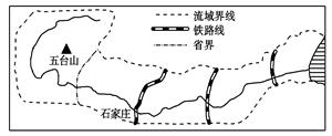 1.图中所示流域为2.关于图中五台山北侧河流的水文特征的叙述,正确的是?