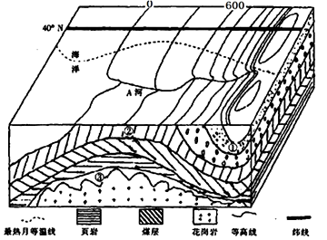 4、单选题 图为40°N 附近某地等高线地形图和海平面以下地层示意图。下列关于A河的说法,正确的是( )
