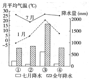 4、单选题 下图为四个地区气候资料图,据图完成(1)一(2)题。