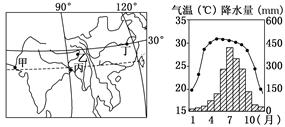 小题1:图所示气候类型与左图中甲乙丙丁四地相符的是( )
