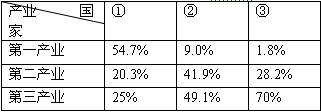 5、单选题  下表为三个国家2003年的产业结构表,读表回答下列各题。