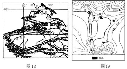 (4)图19所示地区A、B、C、D四处中,哪一个可以成为该区域发展的中心??
