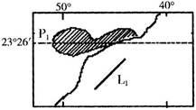 2、单选题 读两大陆局部示意图,阴影区P1、P2表示两类不同的经济作物分布区,读后回答问题