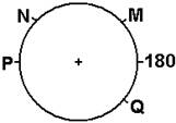 3、单选题 下图是以极点为中心的50°纬线图,图中数字表示经度度数,P、Q之间和M、N之间为陆地。据图回答1~3题。