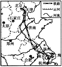 2、单选题 京沪高速铁路是我国第一条具有世界先进水平的高速铁路,全长约1318千米,预计将于2010 年底全线贯通,并于2012年通车运营,读下图并结合所学知识回答1~2题。