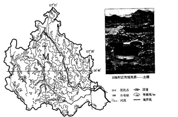 材料二 土楼是B地附近山村的传统民居建筑,用山石或河石砌成地基,石基露出地面部分一般在50~100厘米之间。以红土筑墙,墙体厚实,以杉木为柱粱,构架吻合紧密。