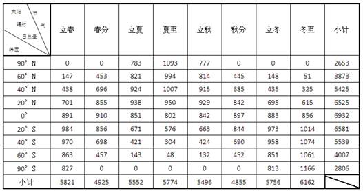 (2)北纬90°在夏至日较南纬90°在冬至日获得的太阳辐射日总量少73×4.2焦/厘米2·日,