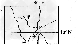 5、单选题 中国某一远洋运输船沿着图中虚线航行,在太阳初露海面时,刚好通过P地,此时卫星电视正在播报北京时间为9:00。据此完成1—2题。