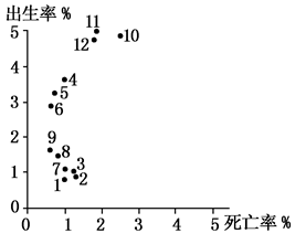 4、单选题 读“不同国家出生率、死亡率统计图(图中1~12代表国家)”。据此完成小题。