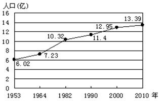 小题1:读图,横轴是时间,纵轴是人口数,根据人口普查统计图的曲线,可以判断1964-1982年间,人口突破了10亿。C对。A、B、D错。