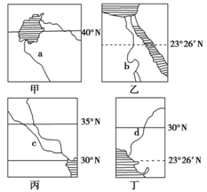 1、单选题 图中的甲、乙、丙、丁所示地区都是灌溉农业区。完成7~9题。