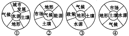 4、单选题 下图是立体农业、灌溉农业、茶叶园艺农业、热带作物种植业的主要制约条件图,按顺序判断正确的是