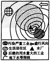 3、单选题 随着我国城市化进程的加快,2008年成渝、武汉、湘中等几个试验区在快速发展。读地下水等深线和某城市用地分布示意图,完成1—2题。?