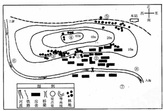 3、综合题 请合理规划一个乡镇的一些基本设施。下表所列各项设施在此乡镇内应怎样布局选址,根据要求在下图所示的设点处(圆圈)填上表中编号。