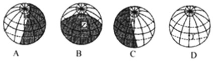 小题2:与上图对应的太阳光照图正确的是(图中阴影部分表示黑夜)