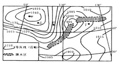 【小题2】产生图示A区域和B区域降水的天气系统分别是( )