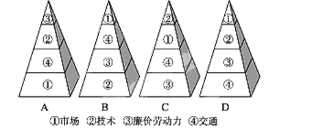 小题1:从工业区位因素分析,该鞋厂与文具产业的区位选择都最符合下面金字塔图中的