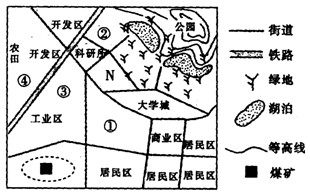 3、单选题 英国某城市是以煤炭资源为基础而发展起来的。随着煤炭资源的日益减少,该城市进入产业转型阶段,寻求新的发展。该图是该城市规划略图,回答14-16题。