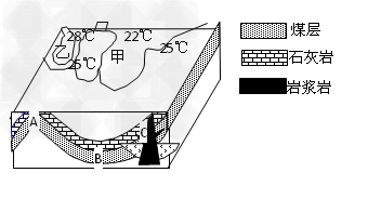 2.按照岩石成因划分,煤层属于_________岩,若在B处采煤,要注意的事故____________________。