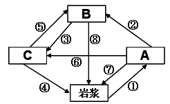 2、单选题 ?读地壳物质循环图,回答1—2题。