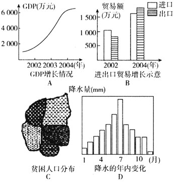 3、单选题 GIS是用于空间分析的计算机系统,某中学地理小组将它作为课题研究。下列四图是同学们为家乡所作的自然、社会经济方面的资料分析图,其中只适宜用GIS数据库软件制作的是