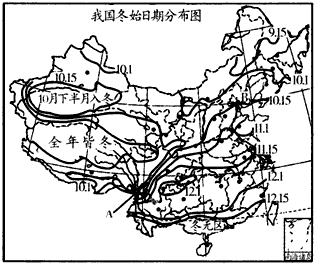(2)A、B两地点地理位置差异很大,但冬始日期时间却基本相同,分析其原因。