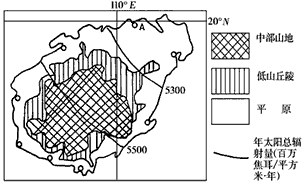 (1)比较A、B两地年降水量的大小,并分析其形成原因。(8分)