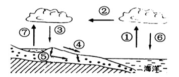 4、单选题  读“水循环示意图”,完成题。