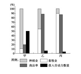 2、单选题  读“甲、乙、丙三个地区农业基本情况比较图”,完成1--3题。