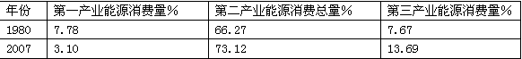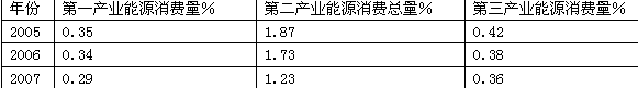 表1、我国三大产业能源消耗量在能源消费总量中所占比重。