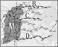 (1)该图中A为___省,该省___资源丰富,为了向外界输送该资源,修建的铁路线B是____线、C是____、D是焦-兖-日铁路线。