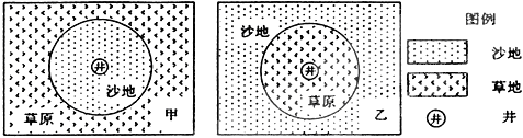1.甲地以井为中心在草原上形成沙地,其原因可能是2.荒漠化的治理既是科学问题,也是社会问题,因此治沙战略应