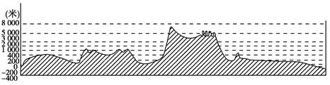 2、单选题 该图为某大洲沿某纬线的地形剖面示意图,据此完成问题。