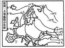 5、单选题  下图为欧洲一月等温线分布图,据此完成题。