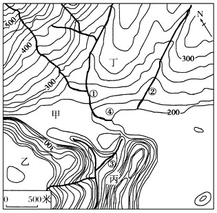 3、单选题 下图是亚热带亚欧大陆东部某地等高线分布图,读图回答1—3题。