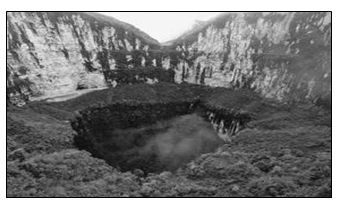 3、单选题  国土资源部在广西进行土地资源调查时,发现了一种世界地质奇观—乐业天坑群(如图),读图完成题。