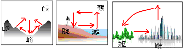 (4)在下面三幅图中用带有方向的箭头画出热力环流。