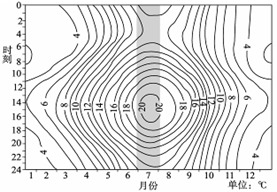 2、单选题 下图为某地全年平均气温的等温线图,该地7月的月均温最接近