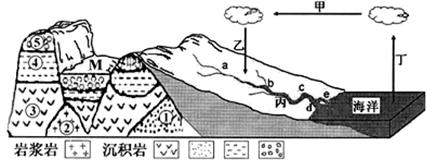 小题1:由图中岩层的分布可以判断岩层的沉积顺序①③④⑤,②处的岩浆岩最后形成;图中褶皱和断层是先形成褶皱后断层,然后发生②处的岩浆侵入活动;与M处形成原因相同的是渭河平原、汾河谷地,华北平原是由沉积作用形成的。