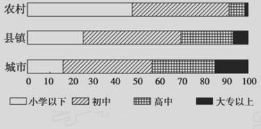 3、单选题 下图为“我国城乡15~64岁各种受教育水平人口比重图。”读图,回答下列问题。