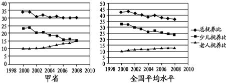 D.甲省老人抚养比的变化幅度略高于全国平均水平