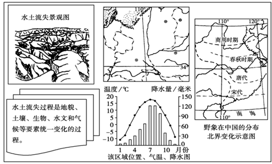 (1)由图中资料,分析推断该区域商周时期与现在气候特征的差异。3分
