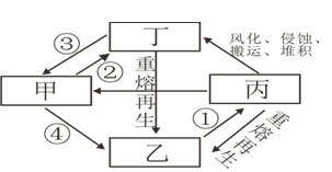 D.丁为沉积岩