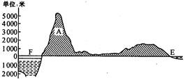 1、单选题 读“某大陆沿南回归线地形剖面示意图”,回答问题。