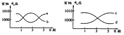 3、单选题  ? 以下是不同天气系统过境前后的气压变化示意图,图中的四条曲线中,表示冷锋过境前后的气压变化曲线是