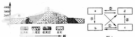 1、单选题 图1为“某地地质剖面示意图”,图2为“地壳物质循环简图”。回答下列各题。